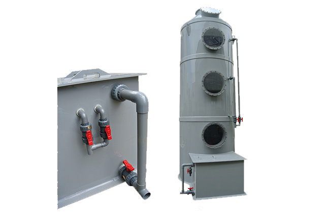 PPs洗滌塔結(jié)構(gòu):洗滌塔由除霧層、噴淋層、填料層、風(fēng)機(jī)、風(fēng)管、塔體、供水箱、供水泵等部分組成。
